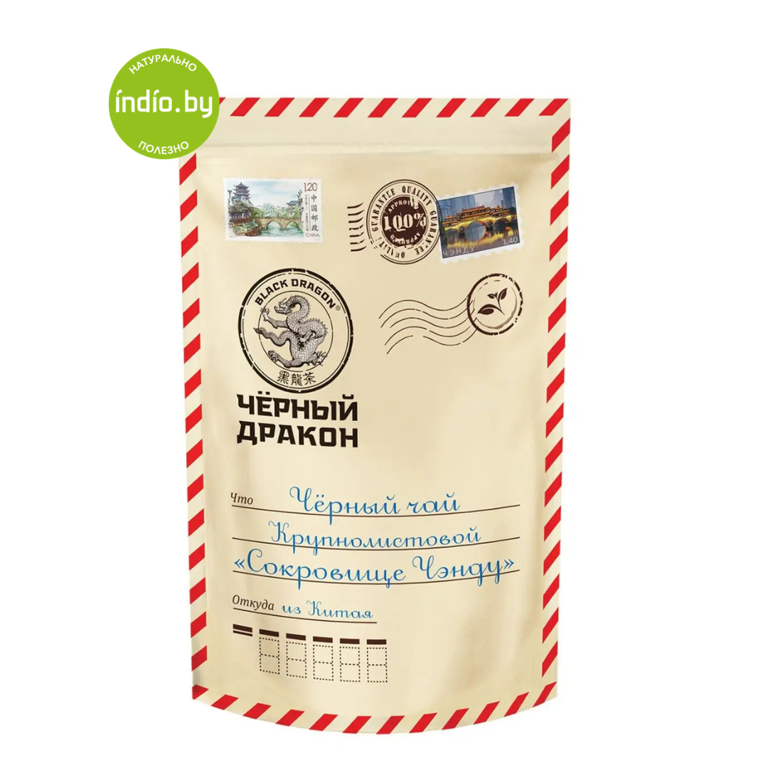 Чай черный байховый китайский «Сокровище Чэнду» крупнолистовой высшего сорта, «Черный дракон» 100 гр
