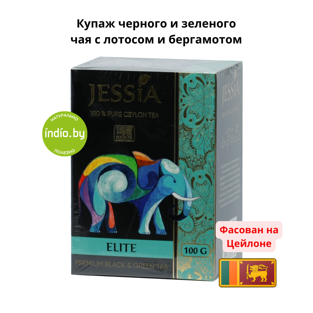Чай купаж черного и зеленого крупнолистового цейлонского чая с маслом бергамота Джессия Элит JESSIA Elite, 100 г Шри-Ланка