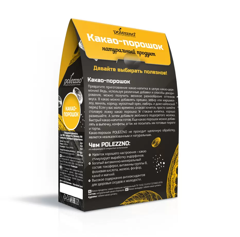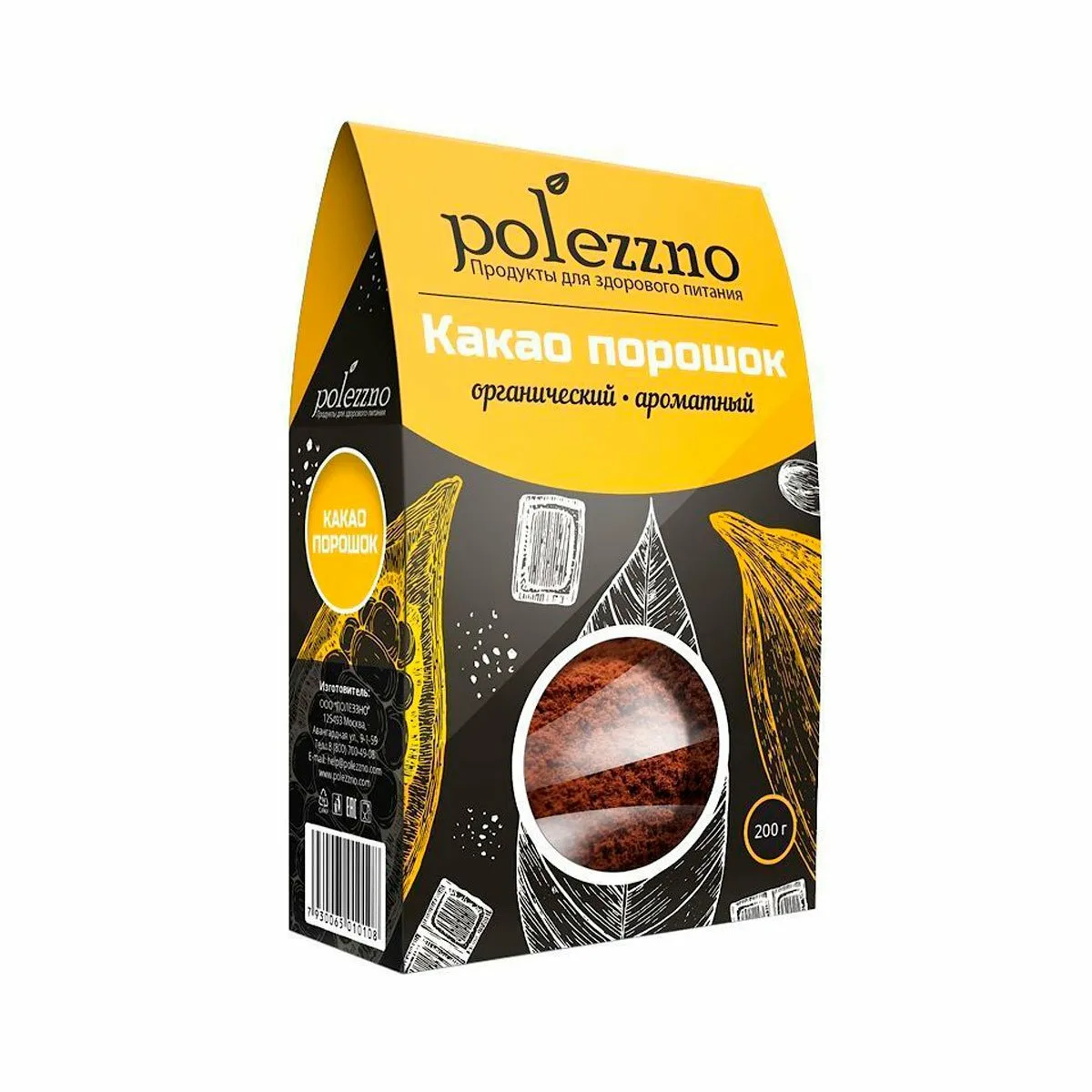 Какао порошок натуральный неалкализованный для напитков и десертов, 200 г Polezzno