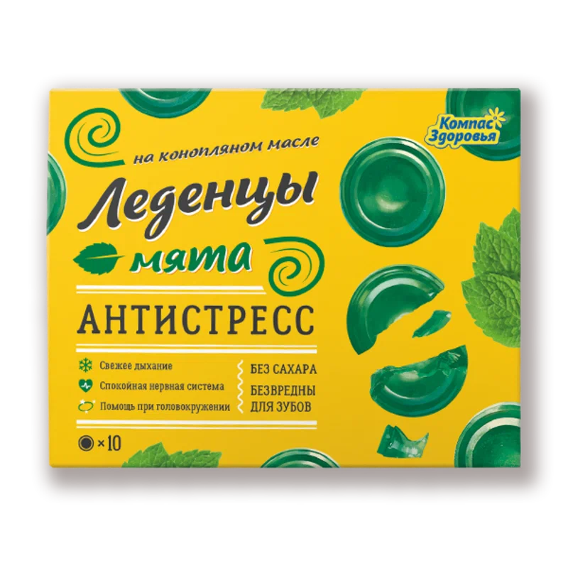 Леденцы «Антистресс» на конопляном масле с мятой «Компас здоровья», 32 гр